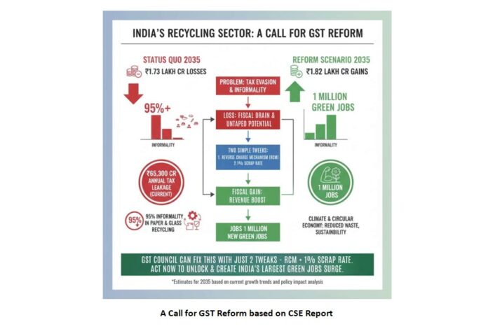 According to the Centre for Science and Environment’s (CSE) 2025 report titled “Relax the Tax” (https://www.cseindia.org/relax-the-tax-12819), two targeted GST reforms could flip this loss into a net positive of ₹1.82 lakh crore through full formalization with a 12% rate transforming India’s ₹5 lakh crore recycling economy.